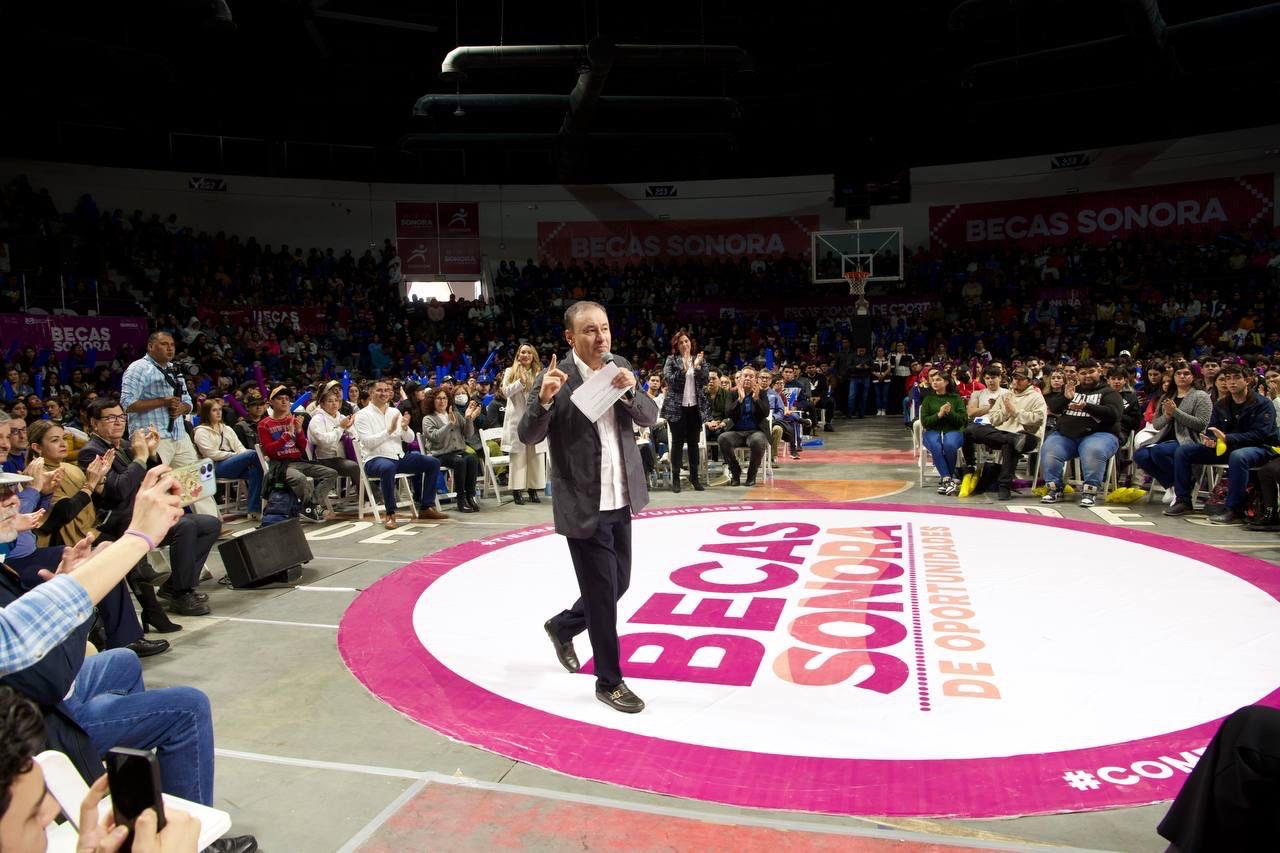 Ante miles de jóvenes, el mandatario estatal, destacó que, si bien todos los programas del Gobierno de Sonora son nobles y apoyan a las y los sonorenses, sin duda alguna, el de becas es el de los más significativos, pues contribuye a que las y los estudiantes sonorenses continúen con su formación universitaria.