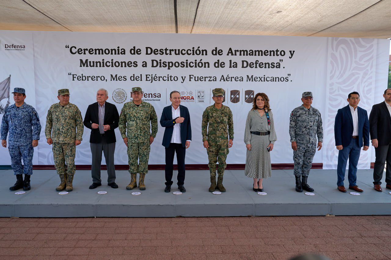 – Como resultado de acciones firmes de inteligencia interinstitucional para fortalecer la integridad de las y los sonorenses a través de la Mesa Estatal de Seguridad, el gobernador Alfonso Durazo Montaño encabezó la ceremonia de destrucción de armamento y municiones a disposición de la Secretaría de la Defensa Nacional (Sedena).