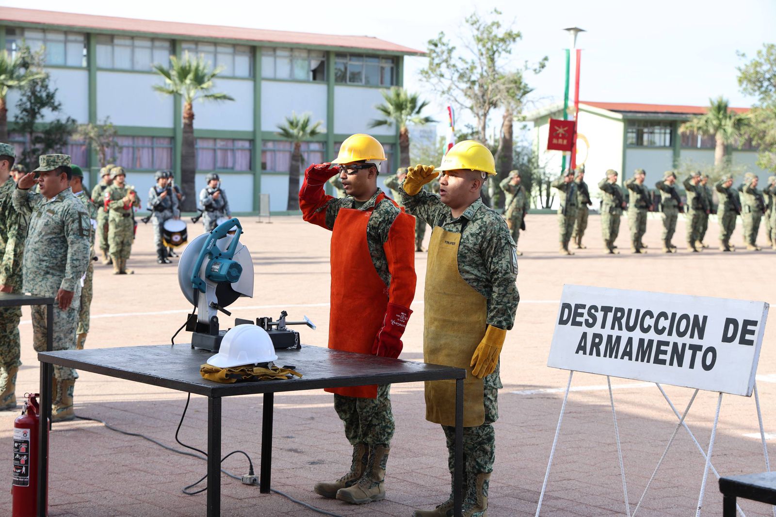 Durante el evento de destrucción de armamento acompañaron al gobernador Durazo, José Manuel Guevara Castillo, comandante interino de la Cuarta Zona Militar; Juan Martín Aguilar Morales, comandante de la Segunda Región Naval; Rafael Acuña Griego, presidente del Supremo Tribunal de Justicia del Estado; Alejandra López Noriega, presidenta de la mesa directiva del Congreso del Estado; Jaime Enrique Félix Jiménez, comandante de la 45 Zona Militar; Anastasio Santos Álvarez, coordinador estatal de la Guardia Nacional de Sonora; Braulio Martínez Navarrete, secretario de Seguridad Pública de Sonora; Eduardo Acuña Padilla, secretario del Ayuntamiento de Hermosillo; Alberto Flores Florián, jefe de Estado Mayor de la Región Aérea del Noroeste; y Francisco Sergio Méndez, delegado de la Fiscalía General de la República en Sonora.