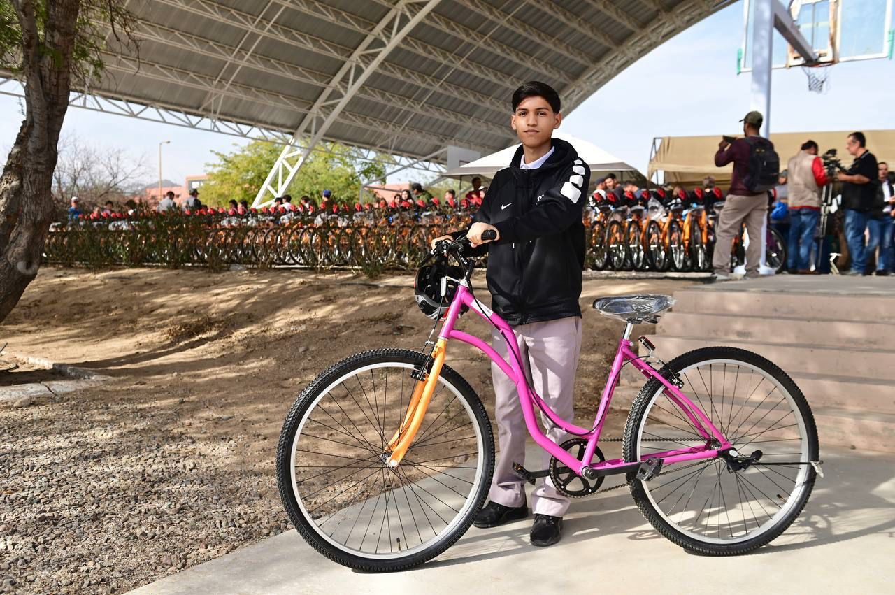 Para darle continuidad al programa de movilidad que llega a estudiantes, así como apoyar a familias en situación de vulnerabilidad, el gobernador Alfonso Durazo Montaño, entregó un total de 320 bicicletas con sus cascos protectores a jóvenes estudiantes de nivel media superior, así como 220 tarjetas tarjetas del programa Mano con Mano.