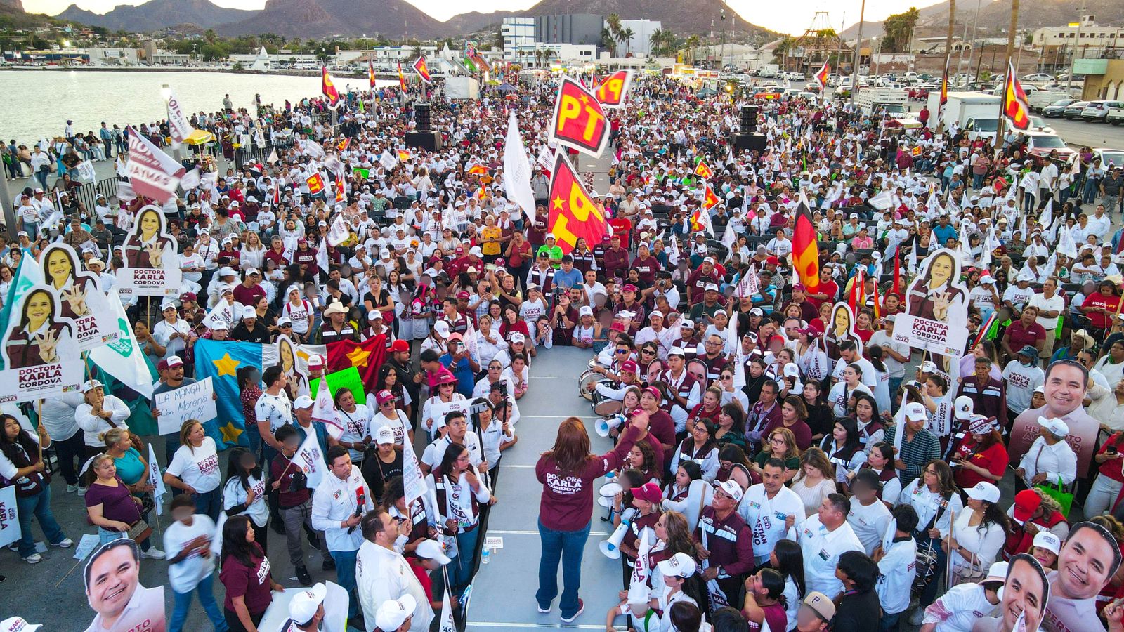 “Saquemos adelante todos juntos a Guaymas y salgamos a votar este 2 de junio por los gobiernos de la Cuarta Transformación”, mencionó la doctora Karla Córdova González, candidata a la presidenta municipal ante simpatizantes en su cierre de campaña en el Malecón Turístico.