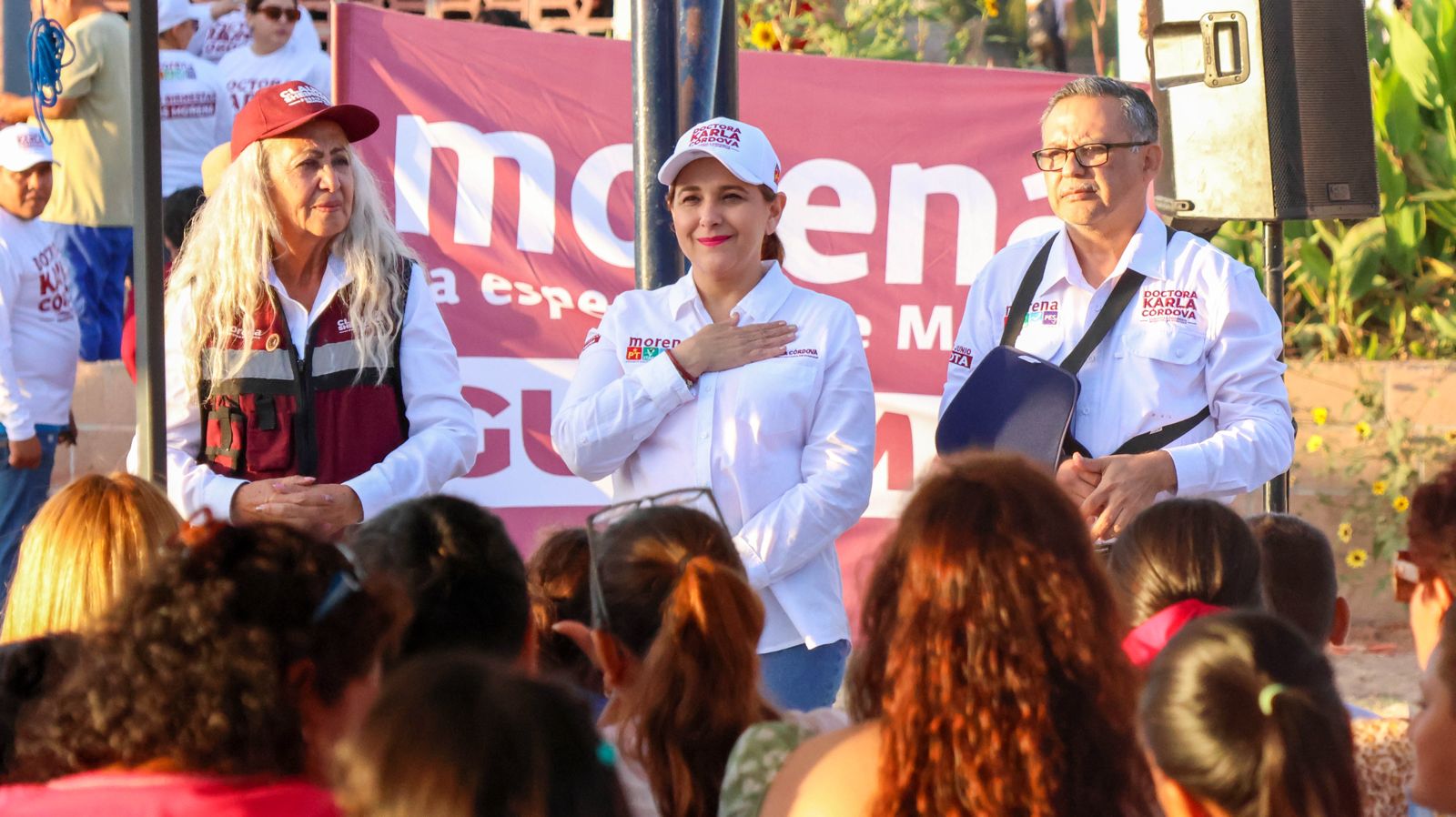 Acompañaron a la doctora Karla Córdova González, el candidato a Síndico Municipal, Celestino Sarabia Tautimez; María de Jesús Delgado Gaxiola, candidata plurinominal a la diputación local y Sebastián Orduño, candidato a diputado local por el Distrito XIII.