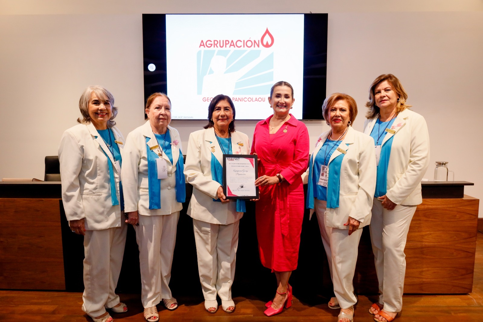 Durante la conferencia, Ana Cristina Molina y Tere Partida Gámez, integrantes de la Agrupación George Papanicolaou A.C., hablaron sobre la importancia de realizar acciones preventivas del cáncer de mama a partir de los 40 años, y de los 35 años si es que la persona tiene antecedentes familiares de dicha enfermedad.
