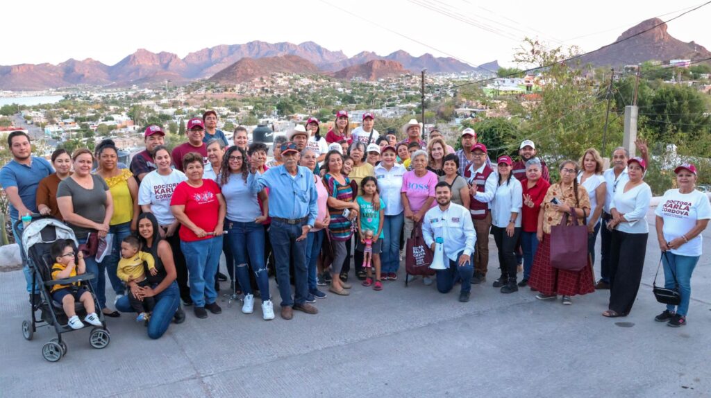 Guaymas, Sonora, 25 de abril de 2024. En jornada de trabajo casa por casa, la doctora Karla Córdova González candidata a la presidencia municipal de Guaymas convivió con vecinos de los sectores Cerro Gandareño, Miguel Hidalgo y San Vicente donde dio a conocer las propuestas de trabajo que impulsarán aún más el desarrollo del Puerto.