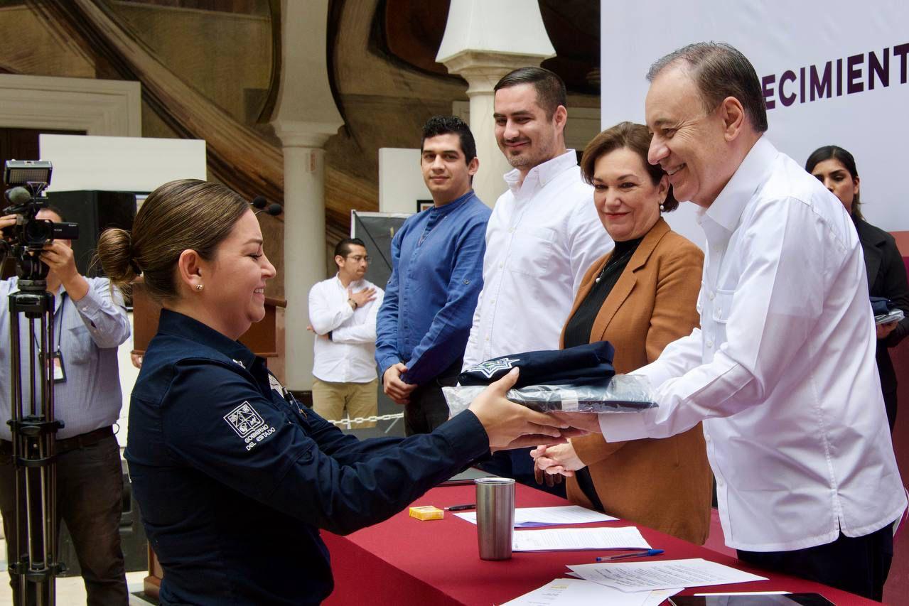 El mandatario sonorense, precisó que estas acciones forman parte del compromiso pactado con los integrantes de la Policía Estatal para brindarles mejores condiciones en su labor salvaguardar a las y los sonorenses, y destacó el incremento de 21 mil pesos en sus percepciones económicas, lo que convierte a la Policía de Sonora en la segunda mejor pagada del país.