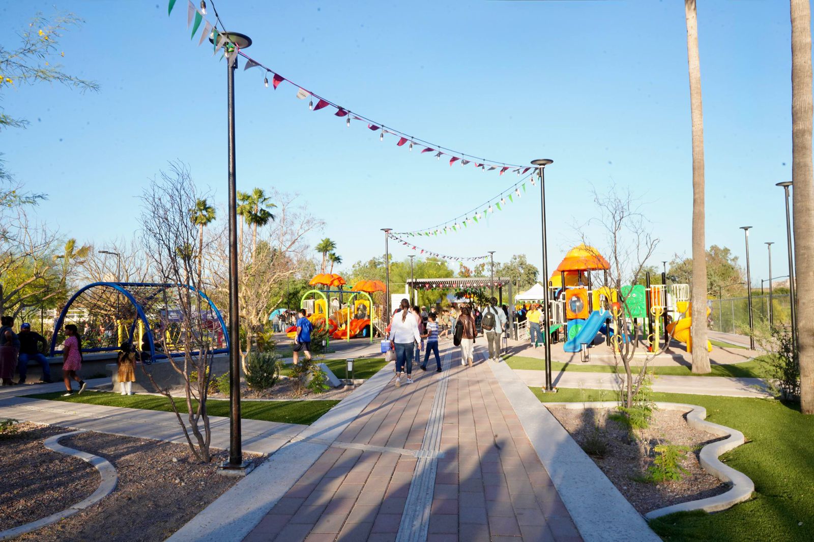 El gobernador Durazo Montaño, para celebrar el primer aniversario de rescate del parque, recorrió la trotapista de dos kilómetros con superficie de tartán, el pabellón kinético, y un estanque con lanchas, así como canchas deportivas, refrendando a este lugar como un espacio vivo que ha transformado a la comunidad a través de la correcta inversión de los recursos públicos.