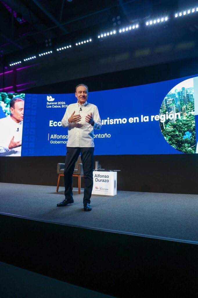 Durante la presentación de su conferencia Economía y Turismo en la Región en el Foro Mar de Cortés, Summit 2024, Ciudades con Futuro, que se desarrolla en Los Cabos, Baja California Sur, el gobernador Alfonso Durazo Montaño resaltó las virtudes del Plan Sonora de Energías Sostenibles al describir las oportunidades de crecimiento económico que ha brindado al estado desde su implementación, al inicio de su administración.