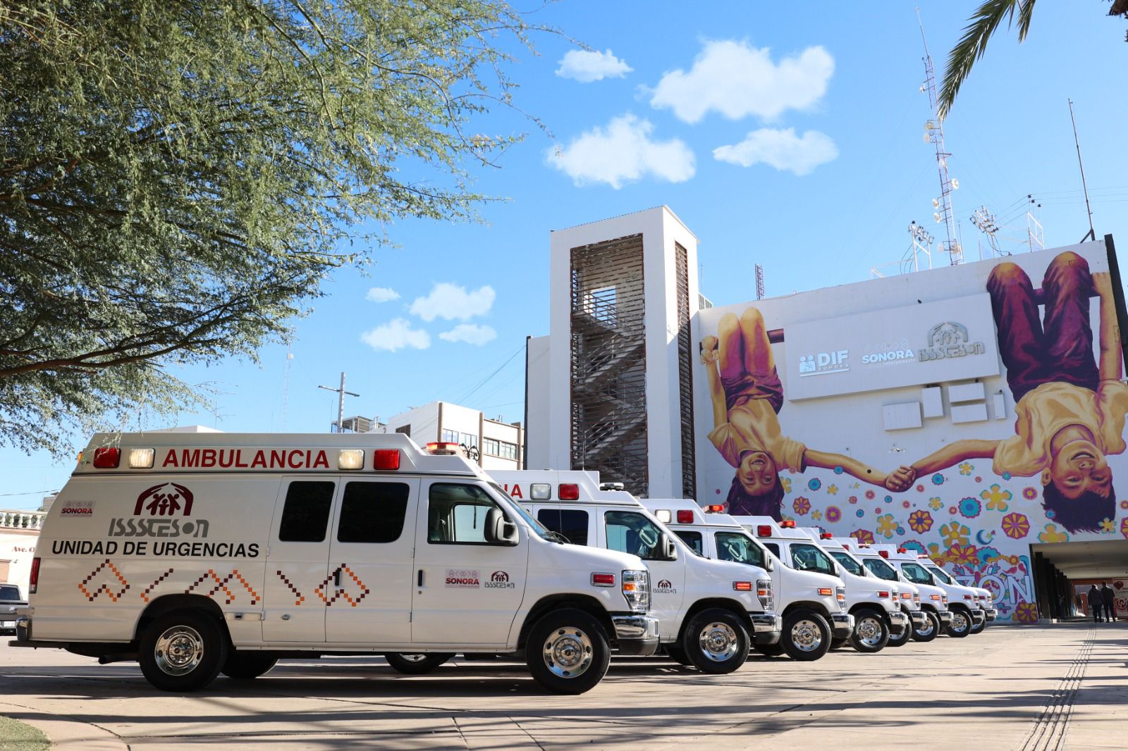 •En su interés de garantizar atención médica digna y equipo suficiente para su operatividad, el mandatario estatal entregó a Isssteson ocho ambulancias y anunció presupuesto adicional superior a los 3 mil millones de pesos para el próximo año.
