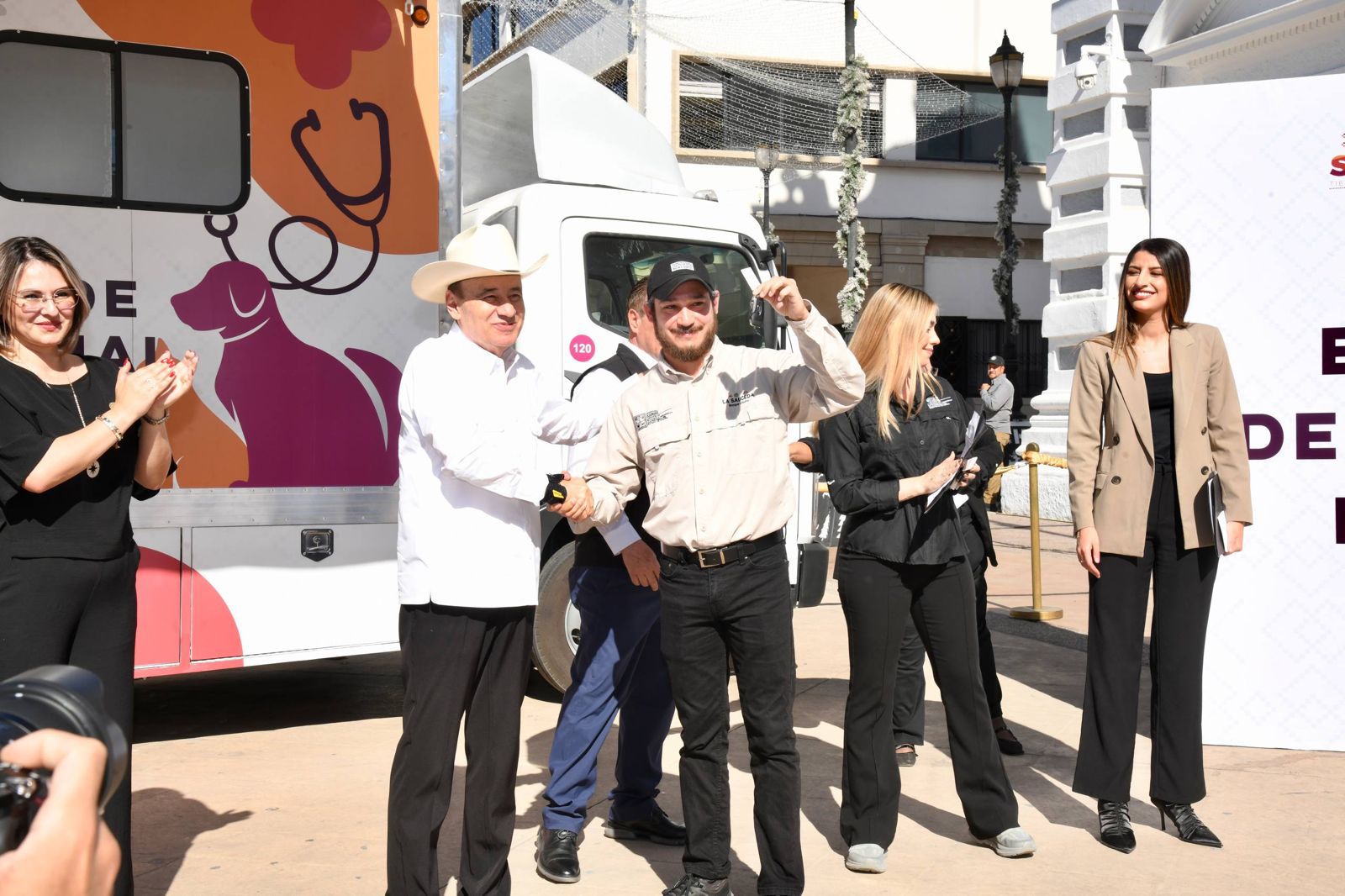 La entrega incluyó una Clínica Móvil para Atención y Bienestar Animal, así como tres vehículos tipo pick up: uno destinado a la Dirección General del Bosque Urbano La Sauceda y dos para la Dirección General de Protección y Bienestar Animal, lo que permitirá mejorar la atención, supervisión y respuesta en distintas regiones del estado.