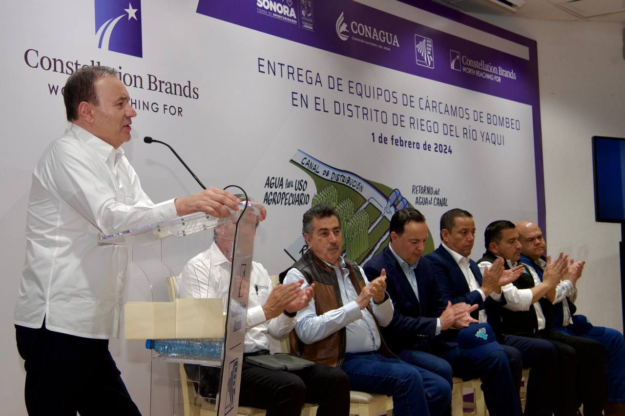 El mandatario estatal destacó la colaboración entre el Distrito de Riego del Río Yaqui y Constellation Brands, sobre todo que esta empresa cervecera ratifica su responsabilidad social que tiene para Cajeme, pues con estos seis cárcamos se generarán 42 mil jornales de trabajo generando un beneficio social el sur del estado.