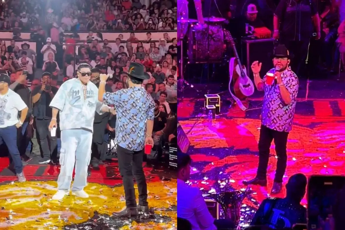 Siendo las 12:40 am el artista arribó al escenario acompañado de sus músicos para interpretar sus éxitos “bélicos”.
