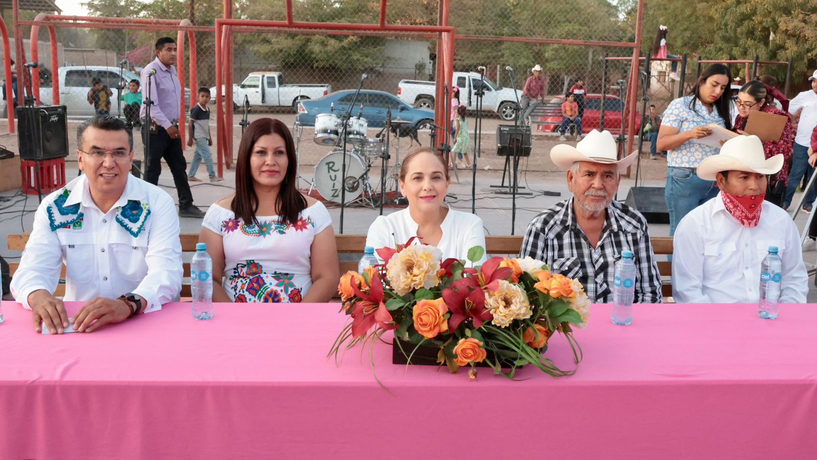 La doctora Karla Córdova González acompañó al segundo gobernador de la Guardia Tradicional del pueblo de Pótam Horacio Matuz Martínez; Claudio Rivera García; el candidato a diputado federal Ramón Flores y la diputada local Griselda López Martínez.