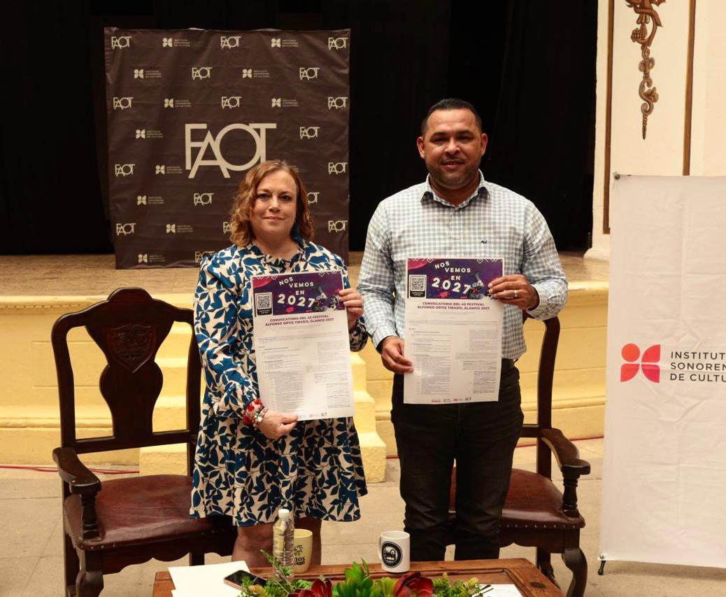 – El Gobierno de Sonora, a través de la Secretaría de Educación y Cultura (SEC) y el Instituto Sonorense de Cultura (ISC), en colaboración con el H. Ayuntamiento de Álamos, presentó la convocatoria de la edición 42 del Festival Alfonso Ortiz Tirado (FAOT) 2027.