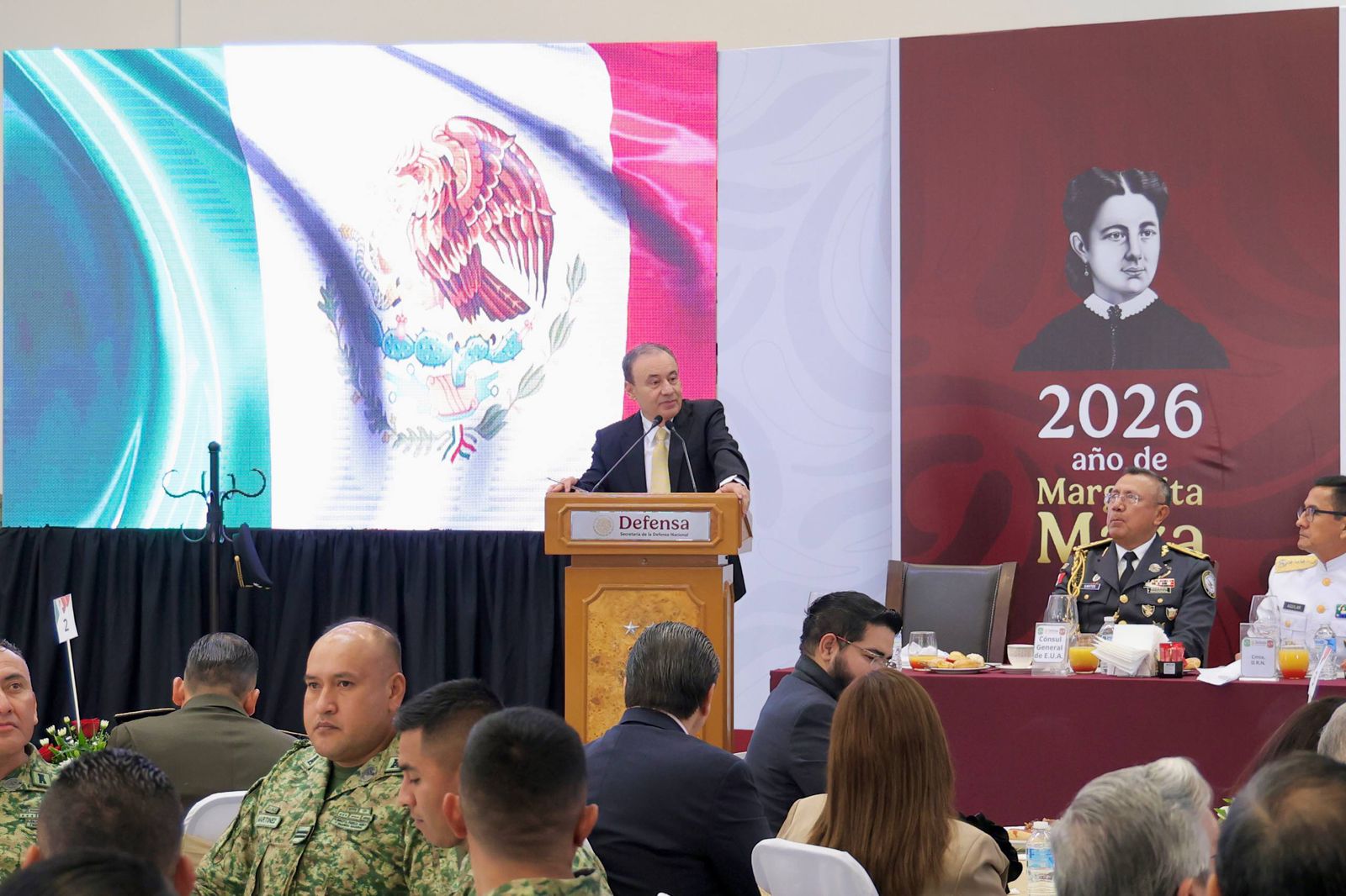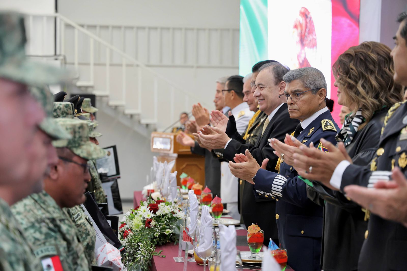 “Un respaldo familiar en el cumplimiento de una responsabilidad, de una tarea tan delicada como la que tienen encomendada las y los integrantes del Ejército, hacen la diferencia. Expresar mi reconocimiento por la formación de todas y todos los integrantes de nuestro Ejército, su compromiso con el país, con la Constitución, sus valores, su sentido del deber inspiran al ámbito civil para que cuando tengamos una responsabilidad cumplamos con ella como lo hacen las y los integrantes de nuestro Ejército nacional”, subrayó el gobernador Alfonso Durazo.