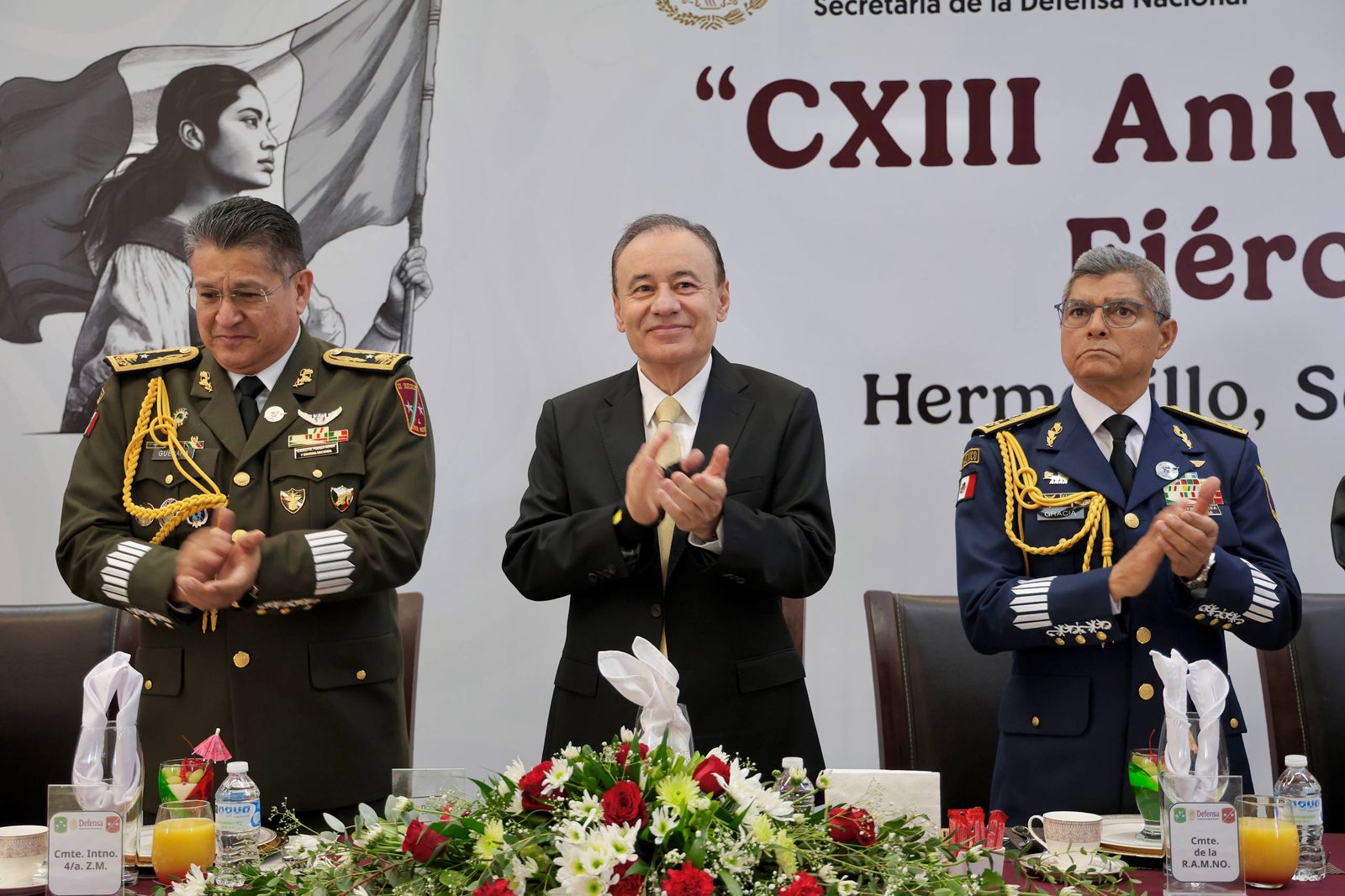 En la ceremonia estuvieron presentes José Manuel Guevara Castillo, comandante interino de la Cuarta Zona Militar; Carlos de Jesús Gracia Ríos, comandante de la Región Aérea Militar del Noroeste; Rafael Acuña Griego, presidente del Supremo Tribunal de Justicia del Estado y Alejandra López Noriega, presidenta del Congreso de Sonora.